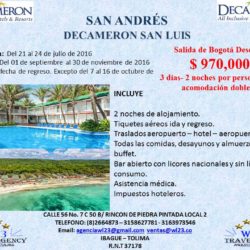 Espectacular promoción a San Andres, con el Hotel Decameron San Luis, desde 970.000 por persona. Reserva al 2664873 – 3158627781